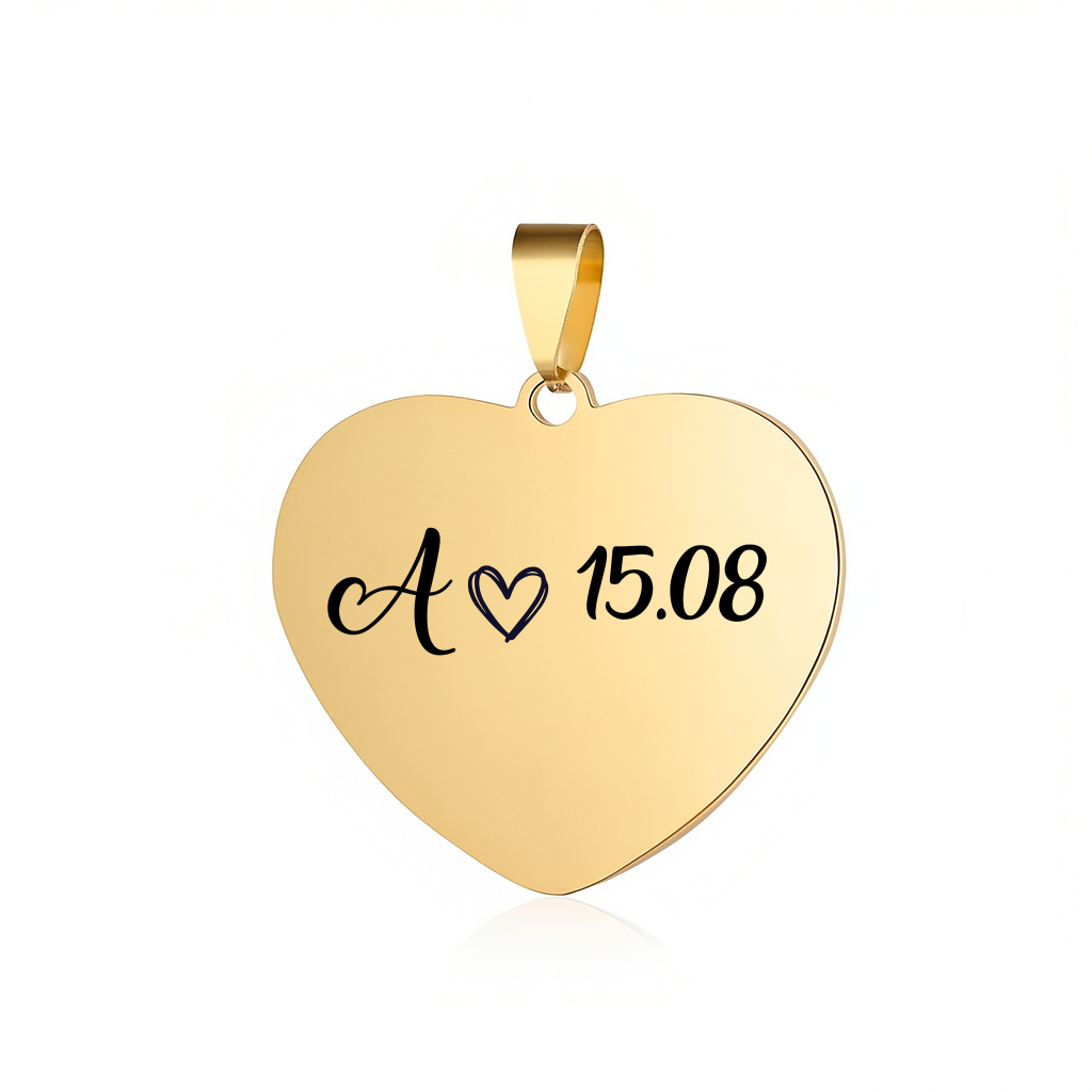 Este colgante personalizado de acero inoxidable con forma de corazón es el detalle perfecto para llevar tus palabras favoritas siempre contigo o sorprender a alguien especial con un regalo lleno de significado.